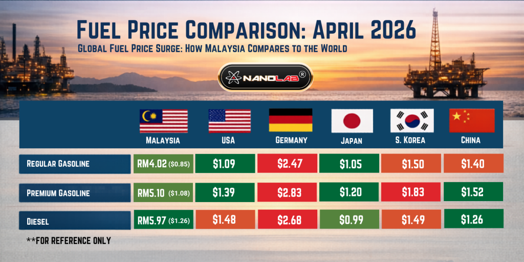 Before comparing countries, one important note: fuel grades are not labeled the same everywhere. Malaysia uses RON95 and RON97. Much of Europe commonly sells 95 and 98 RON, the U.S. uses AKI ratings instead of RON, and Japan, Korea and China often publish broader gasoline averages rather than a direct 95/97 split. So the cleanest international comparison is mainstream gasoline and diesel, with Malaysia’s RON95 and RON97 shown alongside that context.